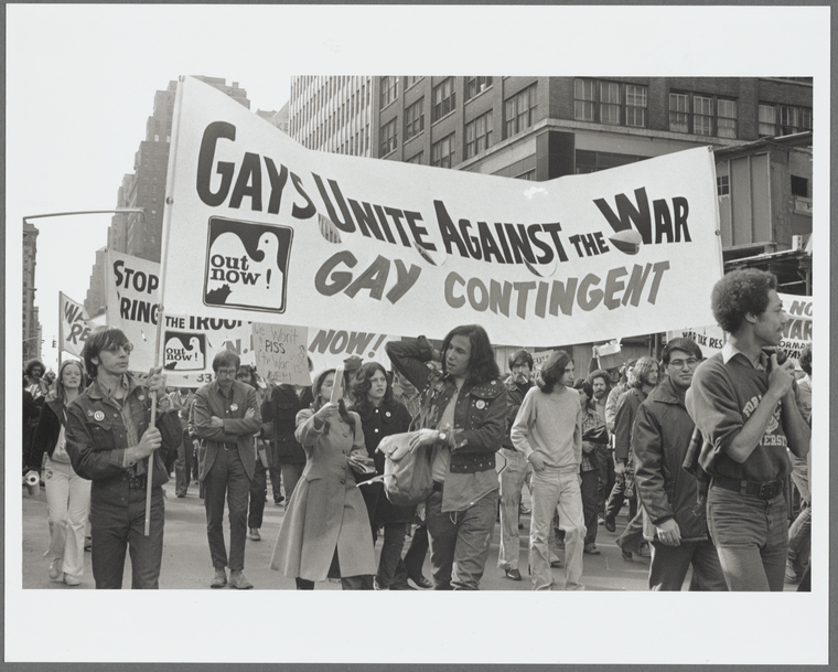 Illustration : A gay contingent in an anti–Vietnam War protest, 1971. (Diana Davies / New York Public Library)