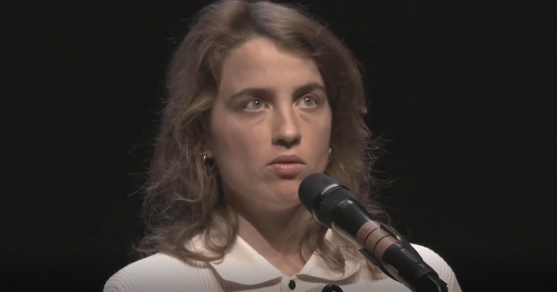 La table ronde s’achève. La parole va s’ouvrir au public. On compte sur la scène Paul B. Preciado (l’invité intellectuel), Nadège Beausson-Diagné (comédienne qu’on a pu voir dans Plus belle la vie ou Marie-Francine), Naëlle Dariya (qu’on a pu voir dans les courts-métrages d’Alexis Langlois) et Adèle Haenel (celle qui se lève et se casse).